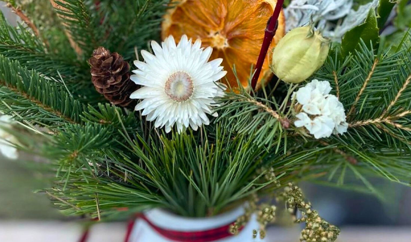 In this hands-on experience, you’ll learn how to craft a beautiful holiday jar arrangement using local, fresh winter greens, elegant dried flowers from Little Dutch Flower Farm, and festive accents like dried citrus and cinnamon sticks.